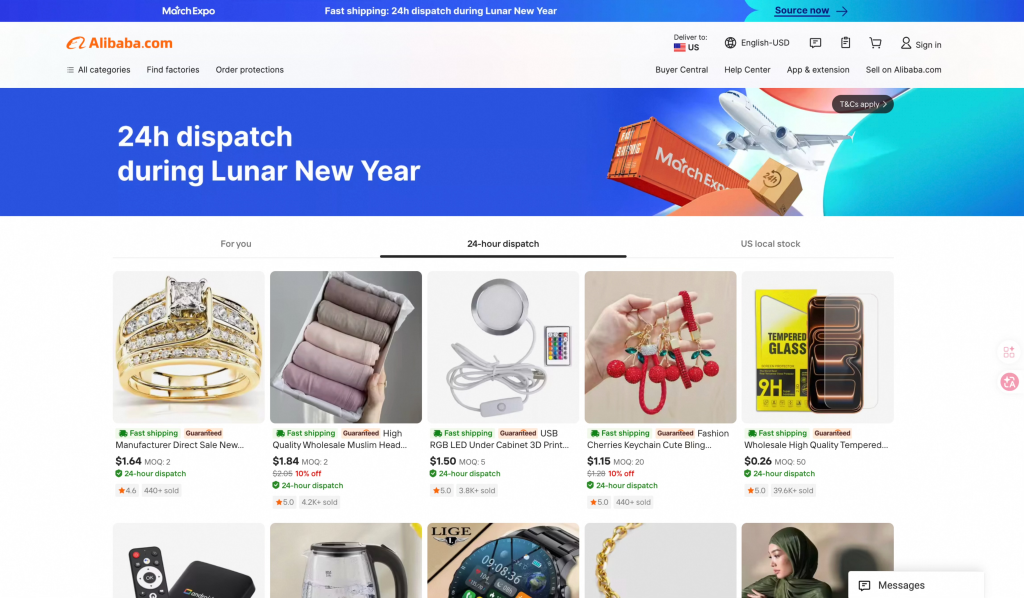 这些商品会被打上“24-hour dispatch”、“Fast shipping”的标,让海外企业买家放心下单:中国虽然在春节放假,但这些商品依然可以实现24小时内自动发货。